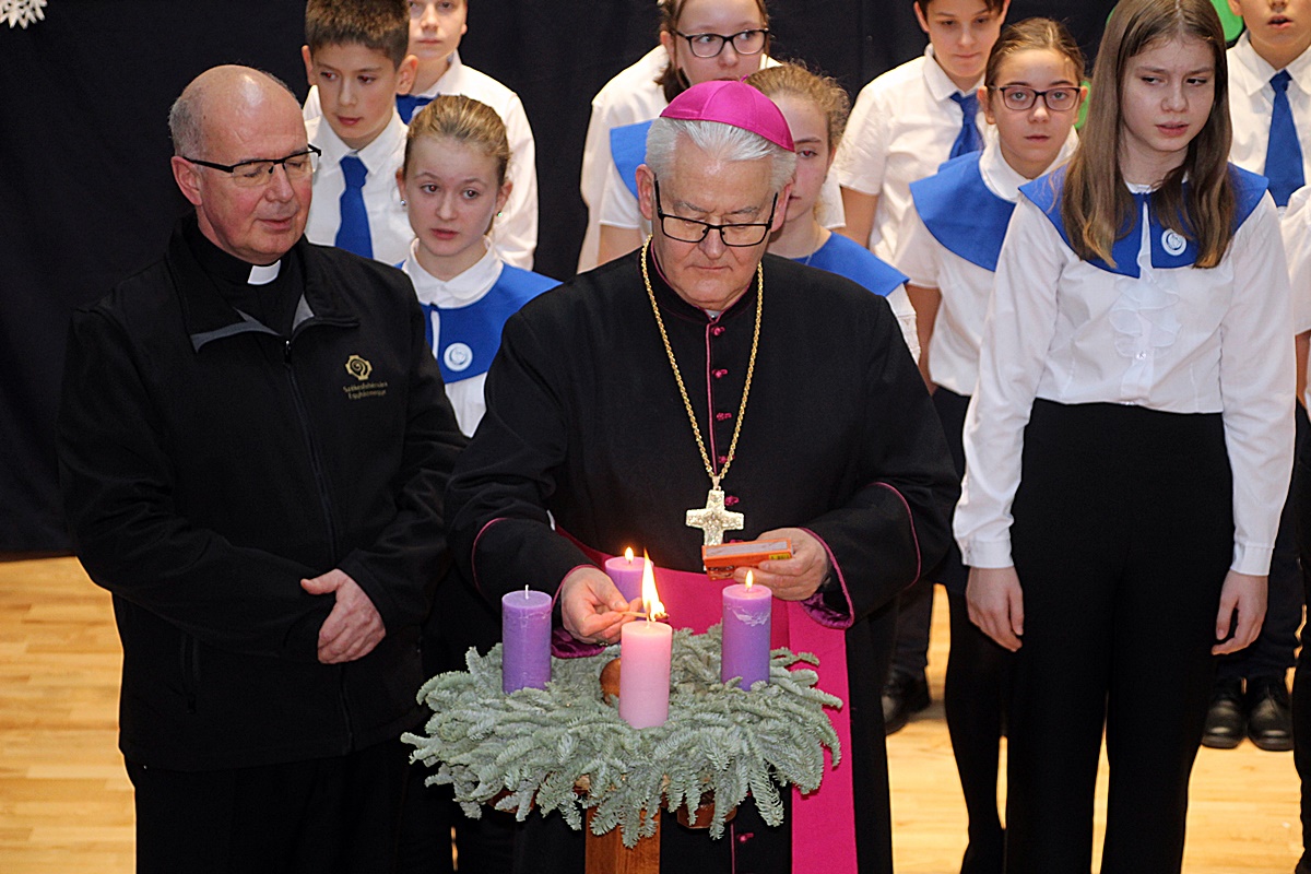 Az adventi várakozás időszakát, a készülődést és annak fontosságát tárták elénk verseken, az alkalomhoz illő énekeken és hangszeres előadáson keresztül 6.a osztályos tanulóink, amikor december 16-án Spányi Antal megyés püspök atya meggyújtotta intézményünk adventi koszorúján a harmadik gyertyát.