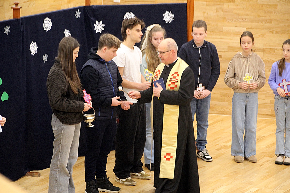 Vízkereszt napjához kötődően Tamás atya a hagyományokhoz híven megáldotta iskolánkat, továbbá a tanulók által készített kereszteket. Az iskola közössége után az óvodai csoportokra is kérte Tamás atya a Jóisten oltalmát.