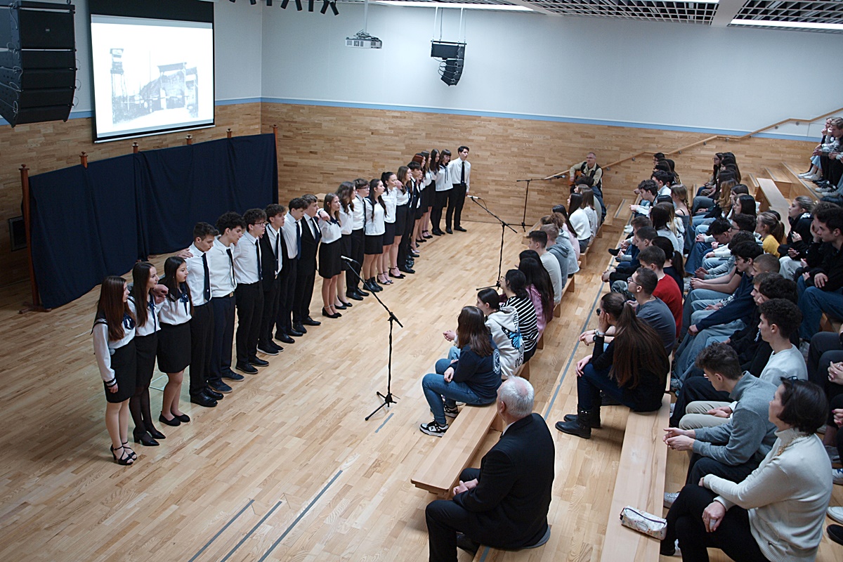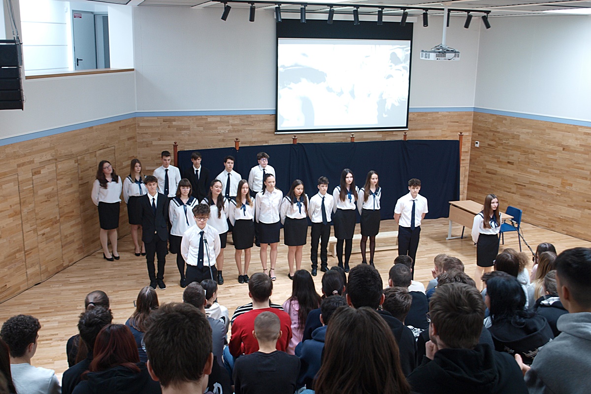 A Fuxné Németh Ildikó tanárnő által összeállított és a 9.B osztály előadásában megjelenített, mélyen átélt műsorral róttuk le tiszteletünket az áldozatok emléke előtt.