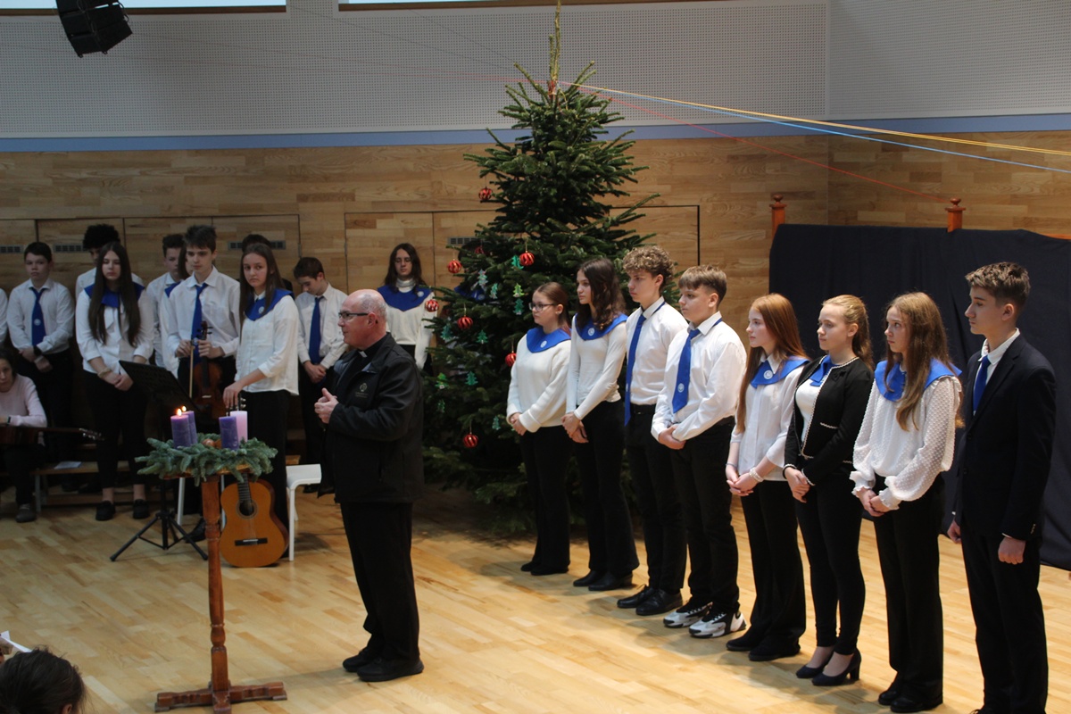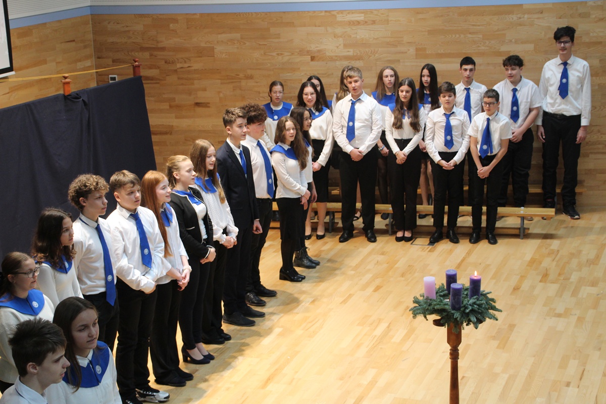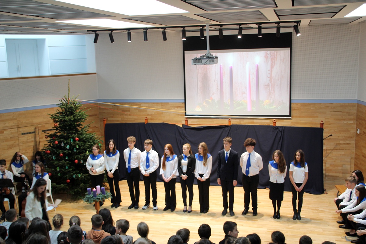 Nyolcadik évfolyamosaink megható, verseket és hangszeres előadásokat magában foglaló összeállítása után a második adventi gyertya lángja is fellobbant.