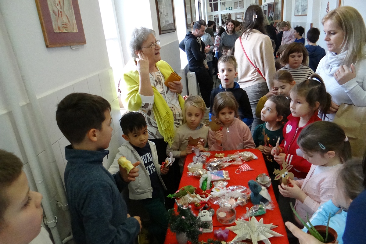 Az osztályok által berendezett standok megteltek kézzel készült apróságokkal, díszekkel, finomságokkal. A vásári forgatag kicsiket és nagyokat is magával ragadott, sőt még a középső és a nagycsoportos óvodások is bejárták az izgalmakat rejtő folyosókat.
