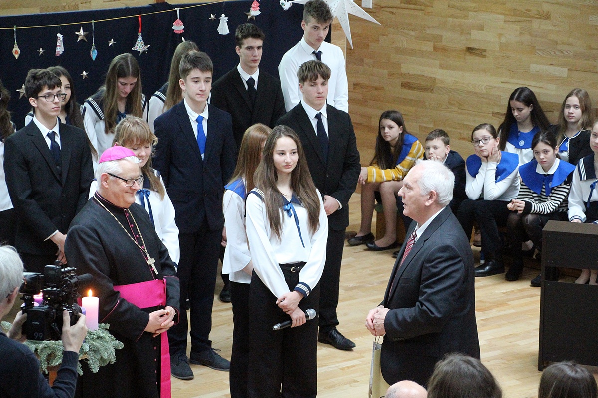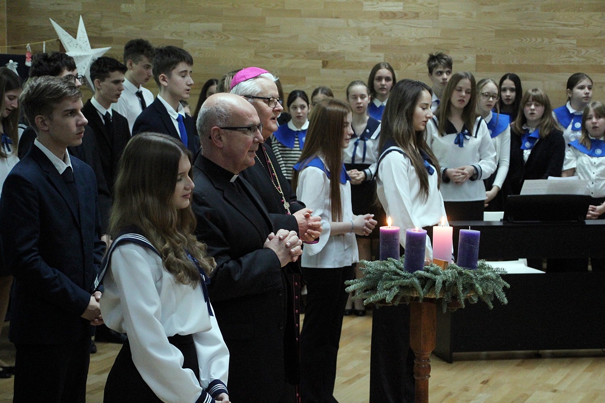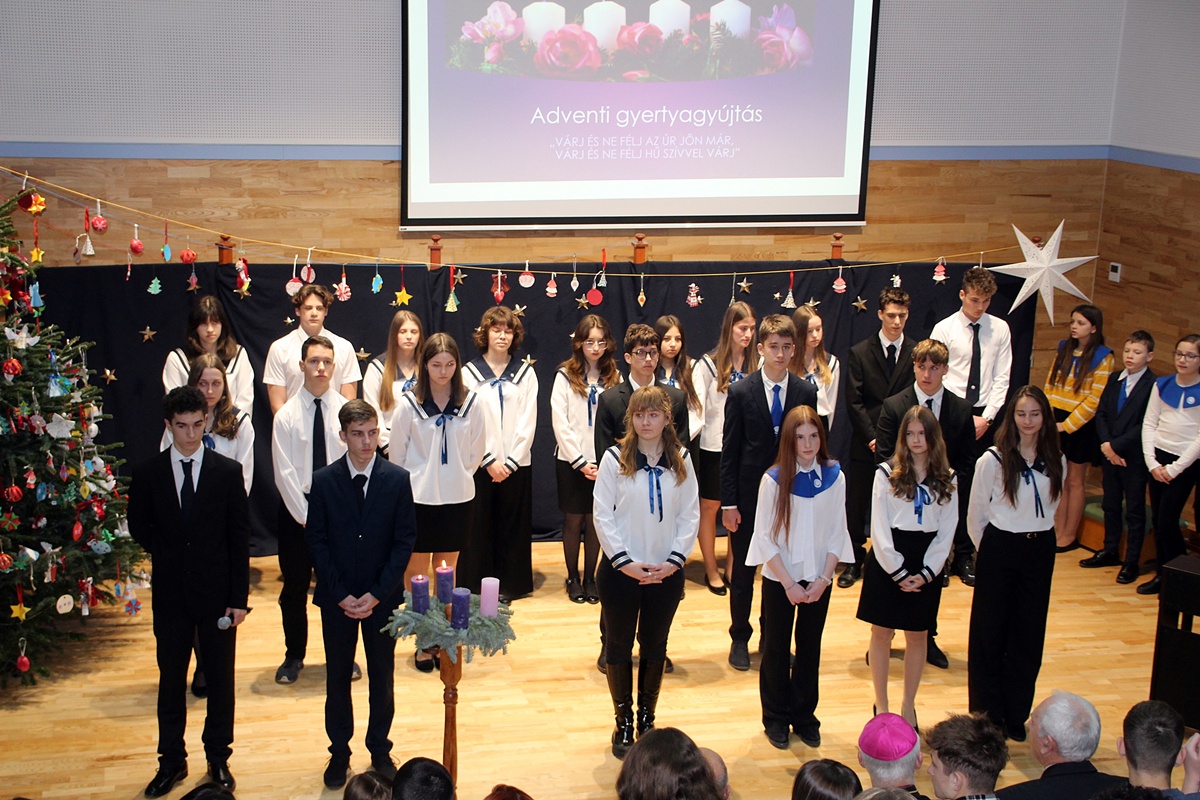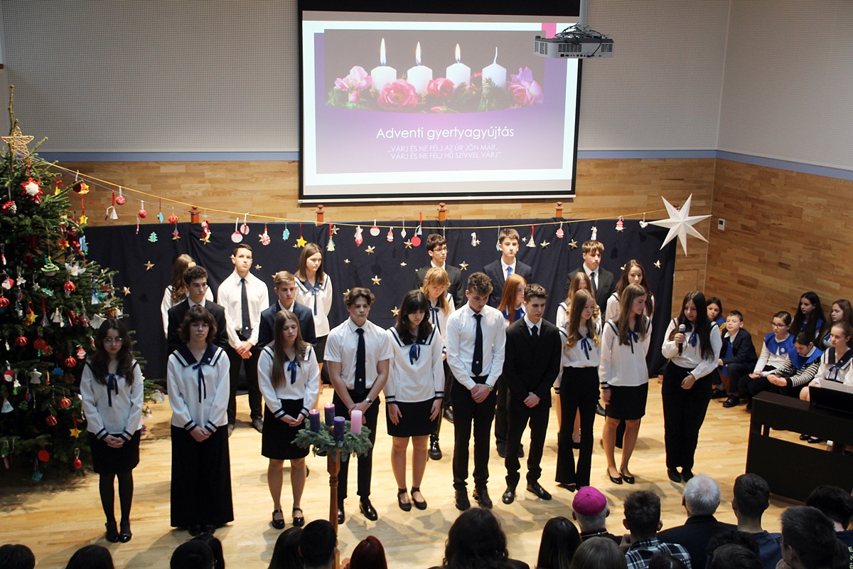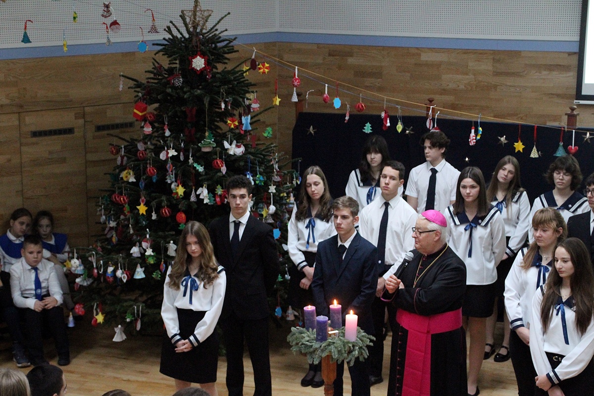 Sokéves hagyomány, hogy Püspök atya advent harmadik hétvégéjét követően ellátogat iskolánkba, hogy személyesen mondja el a készületben megszívlelendő gondolatait közösségünk tagjainak. Az egyre nagyobb fénnyel világító adventi koszorú mellett kérte a tanulókat, hogy próbálják meg magukat, a saját fényüket ajándékozni, hiszen ez a legszebb és legnagyobb ajándék, melyet adhatnak.