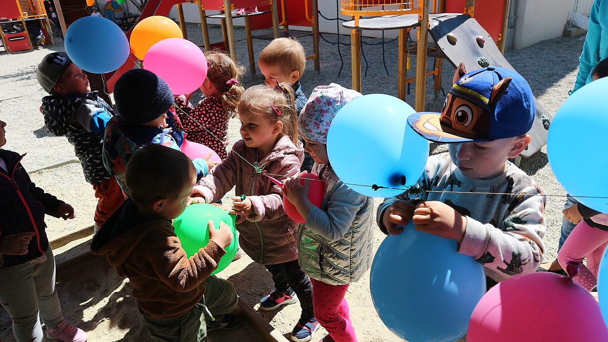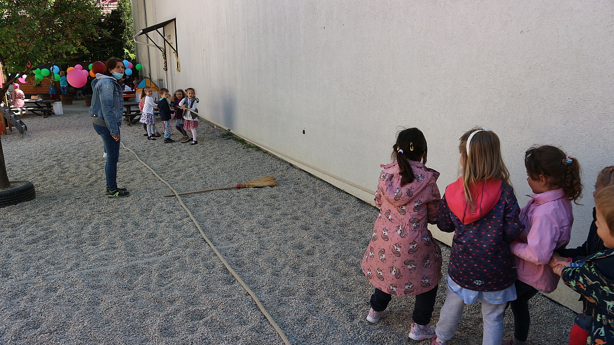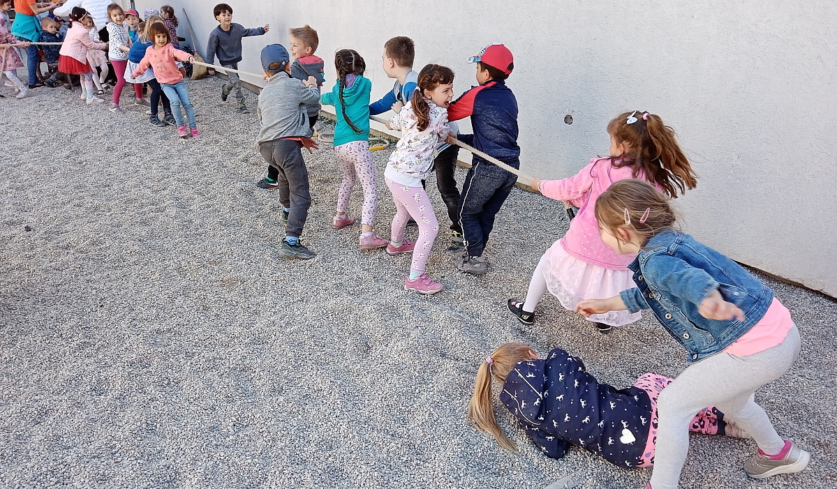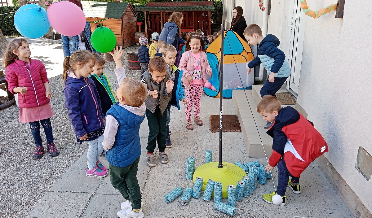 A gyermeknap a Megyeház utcai udvaron és az óvodaépület belső tereiben folytatódott, ahol izgalmas sorversenyekben ügyeskedhettek, apró kincseket kereshettek a kislabdák között, pörgettyűt, szélforgót készíthettek a gyermekek. Az udvaron számtalan ötletes játékot próbáltak ki a kisgyermekek: lengőteke várta őket, erejüket összevethették kötélhúzásban, rátermettségüket babzsák-egyensúlyozásban, de sokan kértek különböző mintájú csillámfigurát is karjukra.
