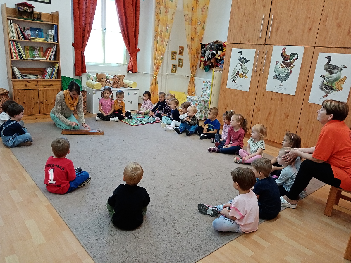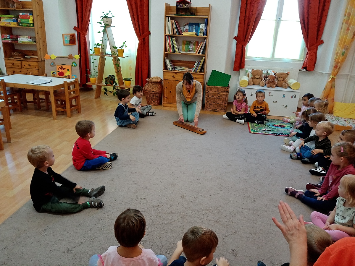Az idei őszi koncertet a gyermekek a saját csoportjukban élvezhették. Ódor Zita néni minden csoportba bevitte népi hangszerét, a citerát, és őszi dalokat szólaltatott meg rajta. Óvodásainkat lenyűgözte Zita néni játéka, kezükkel ütötték vagy tapsolták a ritmust, és az általuk ismert dalokat vidáman énekelték. Felcsendültek az „Érik a szőlő”, a „Hej a sályi piacon”, „A tokaji szőlőhegyen” jól ismert dallamai is.