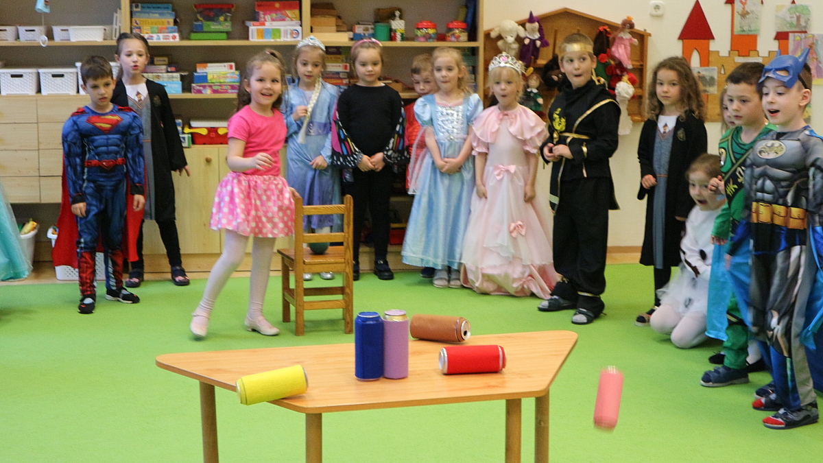 A csoportokat színes szalagok, lufik, bohócok tarkították. Farsang napján az ovisok izgatottan érkeztek az óvodába, hogy társaiknak megmutassák, milyen jelmezt öltöttek magukra. A csoportokban először mindenki megmutatta, elmesélte a többieknek, minek öltözött be, a bátrabbak rövid versbe is foglalták, hogy kinek a szerepébe bújtak. A jókedv minden farsangozót magával ragadott, hangos kacagástól és szurkolástól visszhangzott az óvoda. Pörögtek-forogtak a maskarákban, izgalmas versenyekben vettek részt, biztatták egymást a székfoglalóban, kapuba fújták a pingponglabdát, kincset kerestek a búzadarában és számos egyéb, izgalmas játékkal ünnepelték farsang napját.
