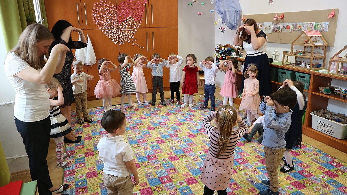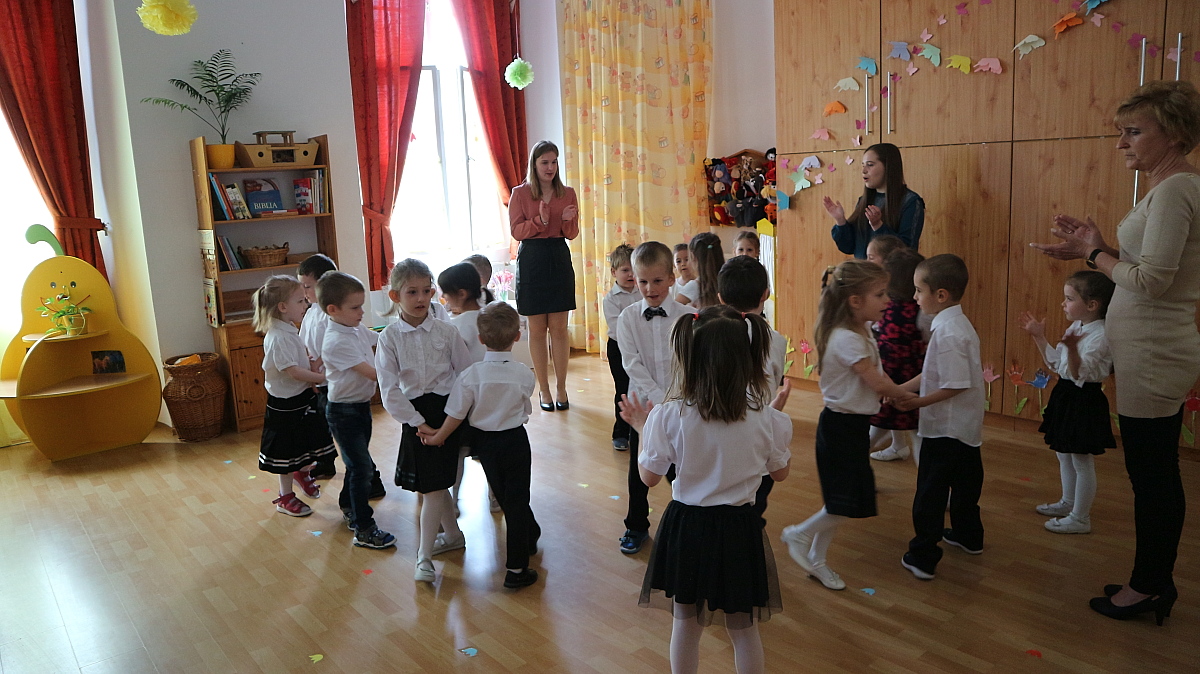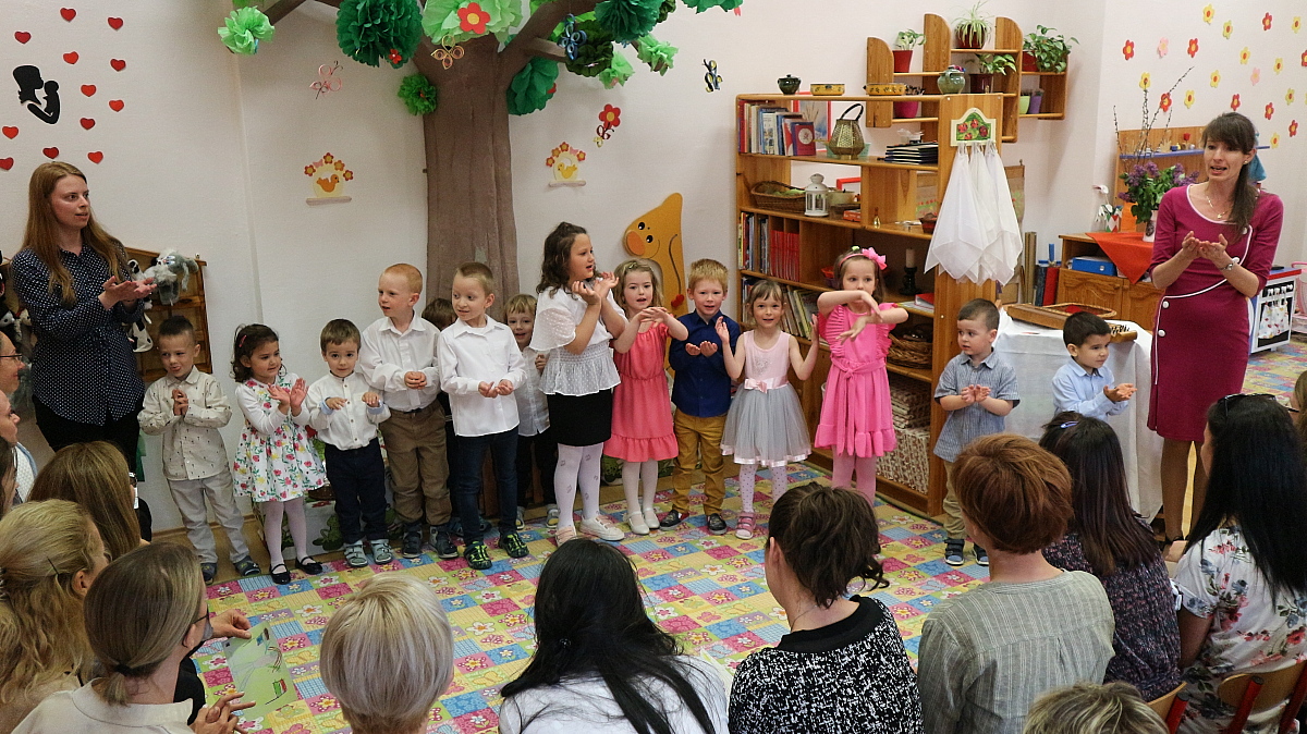 A Bárány csoportban körjátékokkal, zenés-verses összeállítással köszöntötték az édesanyákat és nagymamákat a kiscsoportosok.