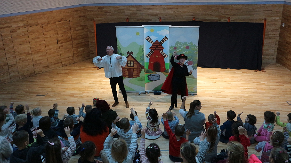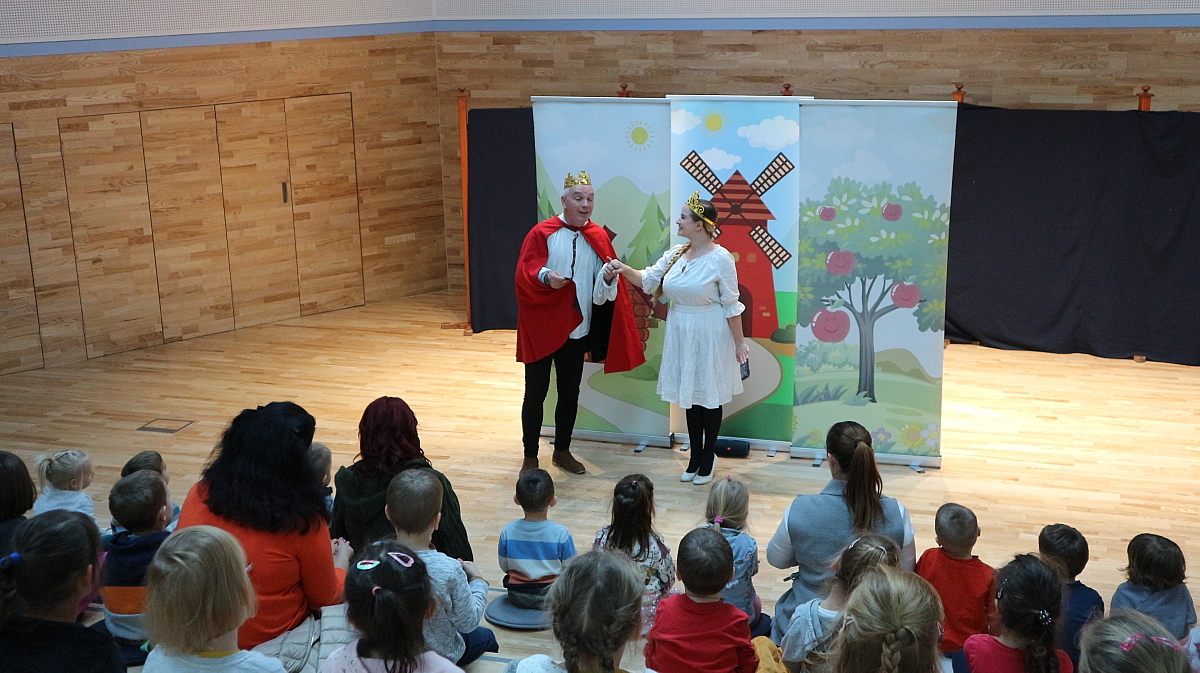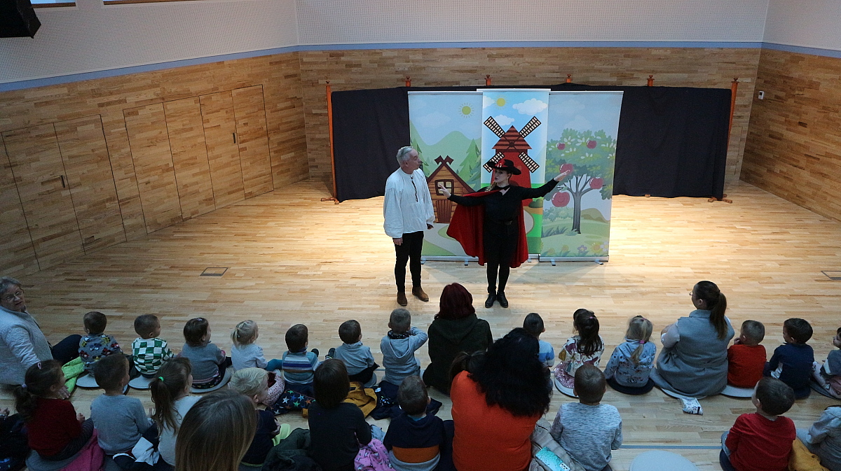 Együtt kalandoztunk a szegény legénnyel, akinek bátorságáról, szorgalmáról, ügyességéről és jószívűségéről bizonyosodhattunk meg. A színészek invitálására a gyermekek aktívan vettek részt a műsorban, együtt szedték az almát a szereplőkkel, számoltak, énekeltek, táncoltak. Csizmás kandúr segítette a fiatal fiút a vándorúton, míg végül kitartó munkája jutalmául elnyerte a királykisasszony kezét.