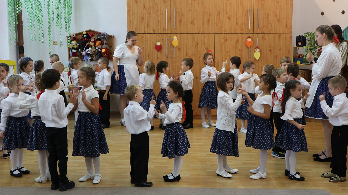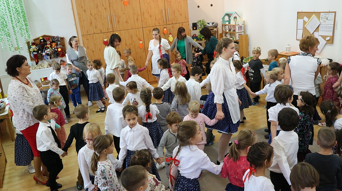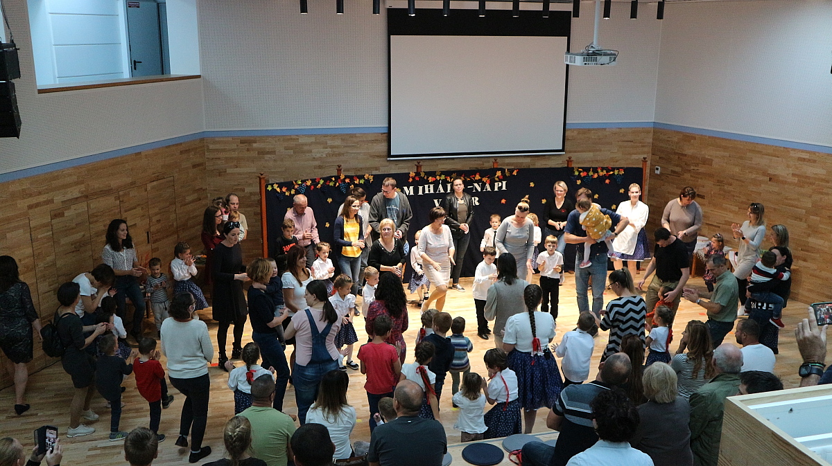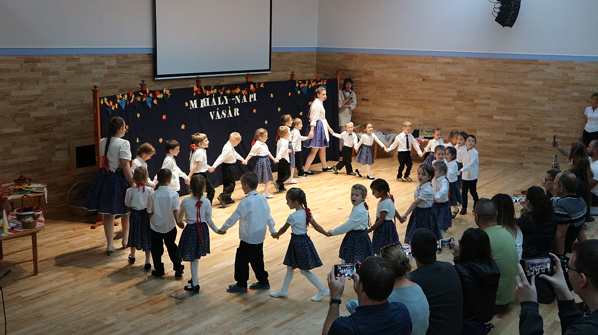 Délutánra aztán hívtuk a szülőket, vártuk a hozzátartozókat a nagycsoportosok hagyományőrző műsorára. Kikiáltókkal, versekkel, tánccal elevenítették fel a régi vásárok hangulatát, majd egy nagyon vidám táncházba invitálták őket a gyerekek. Vásárfiával térhetett ezután mindenki haza a rendezvényről