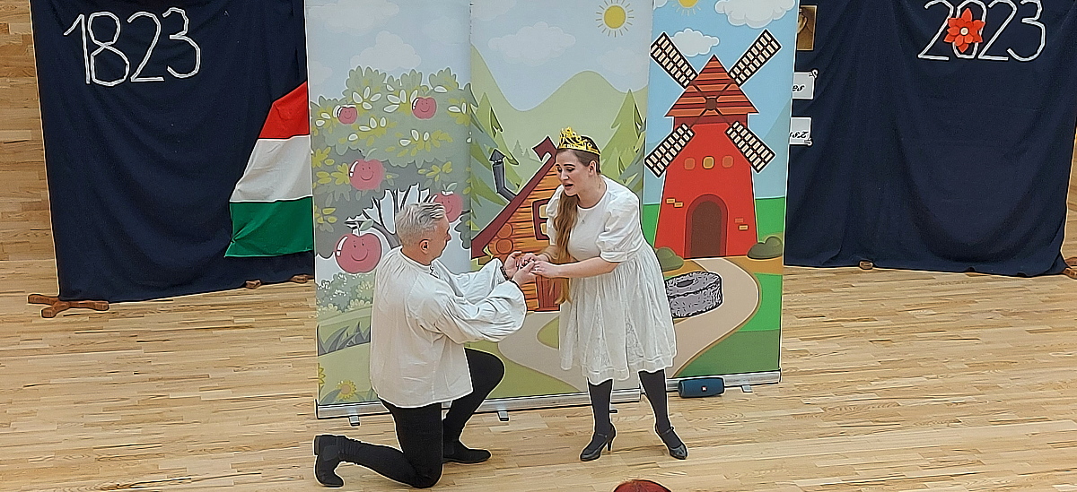 A történetben a furfangos legény csavaros gondolkodásával járt túl a fösvény vénasszony eszén, jól is lakott, ivott is, aludt is. A mese végén az öregasszony szép lánnyá változott, az óvodás fiúk közül is akadt több kérője, de ő a fiút választotta. A lakodalmukba minket is meghívtak, ahol együtt táncolt az óvoda apraja-nagyja.