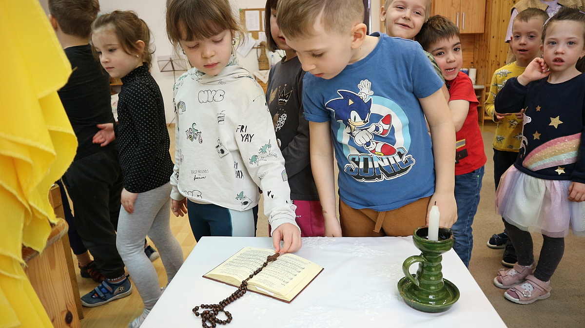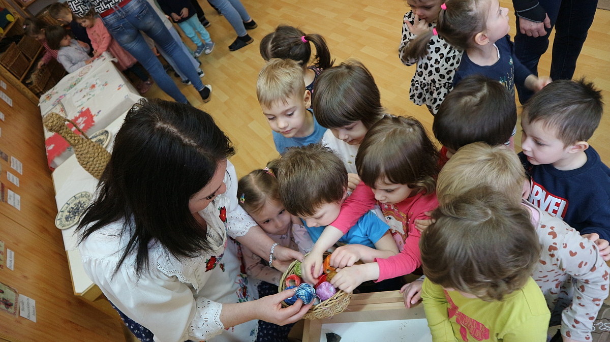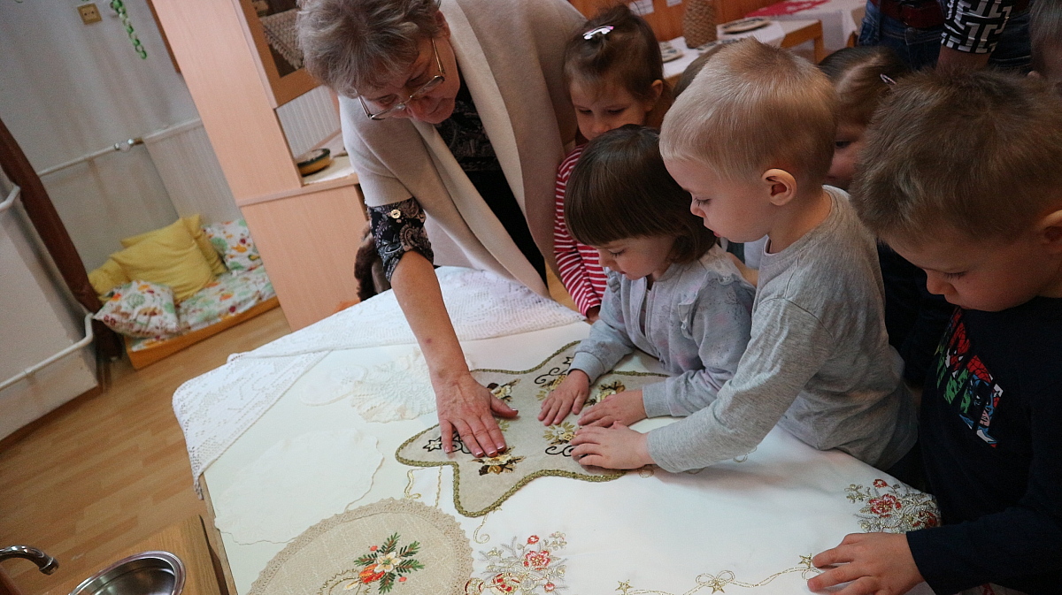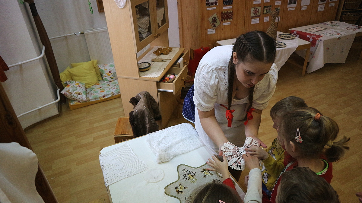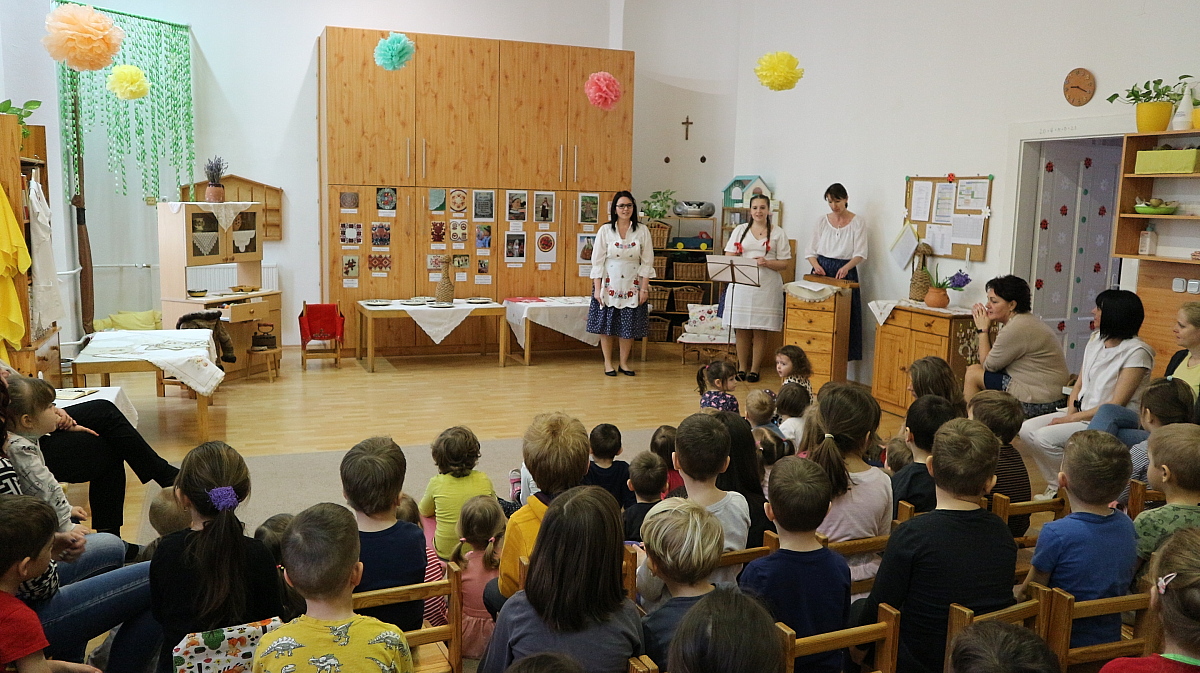 Ezúttal – rendhagyó módon – nem egy művész alkotásait figyelhették meg a gyerekek, hanem az óvodában dolgozók otthonaikból hozták el a nagymamáik, dédmamáik, idősebb rokonaik által hímzett terítőket, párnahuzatokat, kézimunkákat. A gyermekek megfigyelték, hogyan nézett ki egy régi szenesvasaló, monogramnyomó, vagy kukoricamorzsoló, megtapinthatták a sok szép, színes gombolyagot, amivel eleink hímezték a szebbnél szebb motívumokat. Nép hagyományaink megőrzésének fontosságát ily módon közvetlenül is átélték óvodásaink.