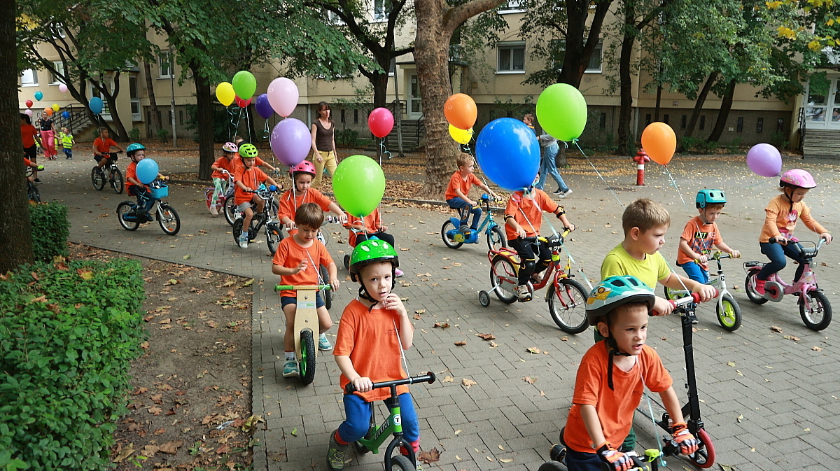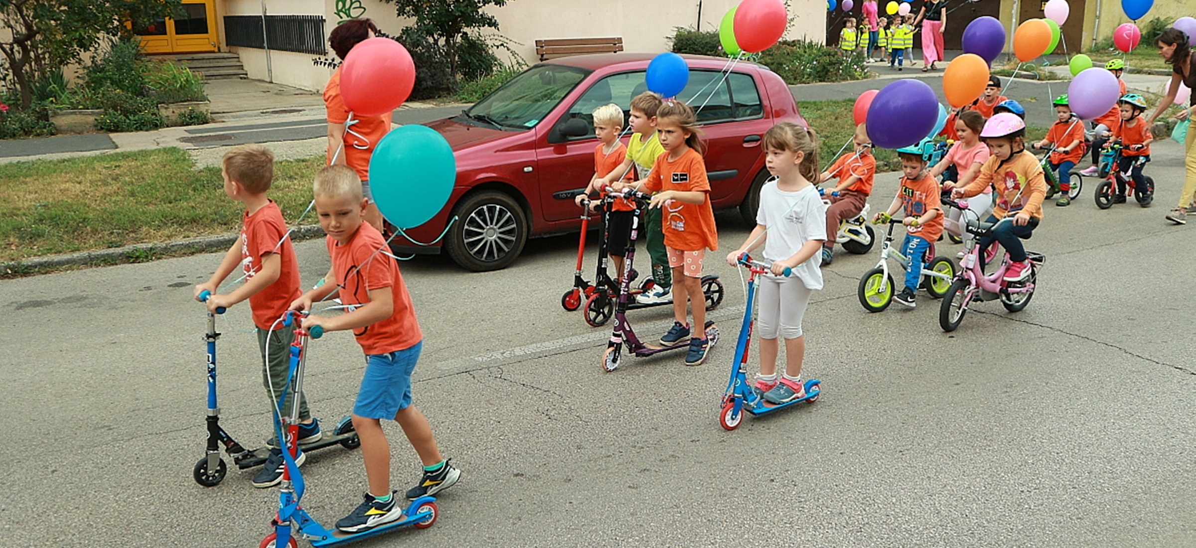 Földünk megóvásának fontosságára nap mint nap felhívjuk a gyermekek figyelmét, ezért szívesen csatlakoztunk a Székesfehérvári Közösségi és Kulturális Központ által szervezett Gurulj velünk! rendezvényre. Az Európai Mobilitási Hét programsorozat ezen eseményén nagycsoportosaink kerékpárral, futóbiciklivel, kismotorral, rollerrel vettek részt. A Németh László Általános Iskola elől startolva színes, környezetbarát lufikkal és nagy lelkesedéssel vágtunk neki a Gáz utca lezárt szakaszának megtételére, hogy felhívjuk a figyelmet a fenntartható közlekedésre, a környezettudatosságra.