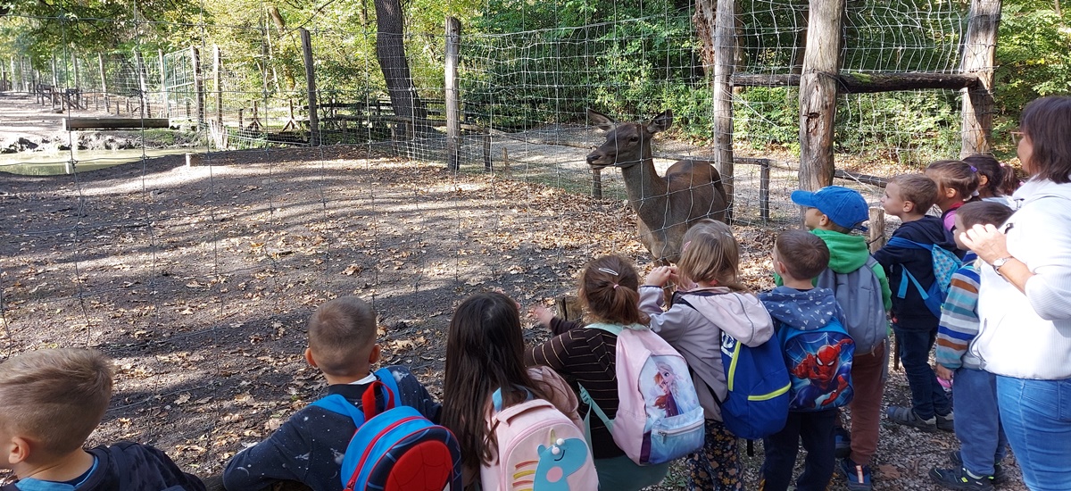 A Bárány csoport egy másik napon is buszra ült, hogy Soponyára utazzon az Ökoturisztikai Központba. Ott találtak egy hatalmas kidőlt fát, melynek törzsét mindenki megmászhatta és nagyítóik segítségével felfedezhették a kéreg alatt lakó apró élőlényeket. A vadbemutató területén egészen közelről láthattak szarvasbikát, őzeket, és a kerítés mellett velük együtt szaladó szarvastehén is felejthetetlen emlék marad. Erdei sétájuk során eljutottak egy halastóhoz, ahol elfogyasztották szendvicsebédjüket és előkerültek az otthonról hozott finomságok is. Élményekkel gazdagodva, és a túrázásban kissé elfáradva tértek haza.