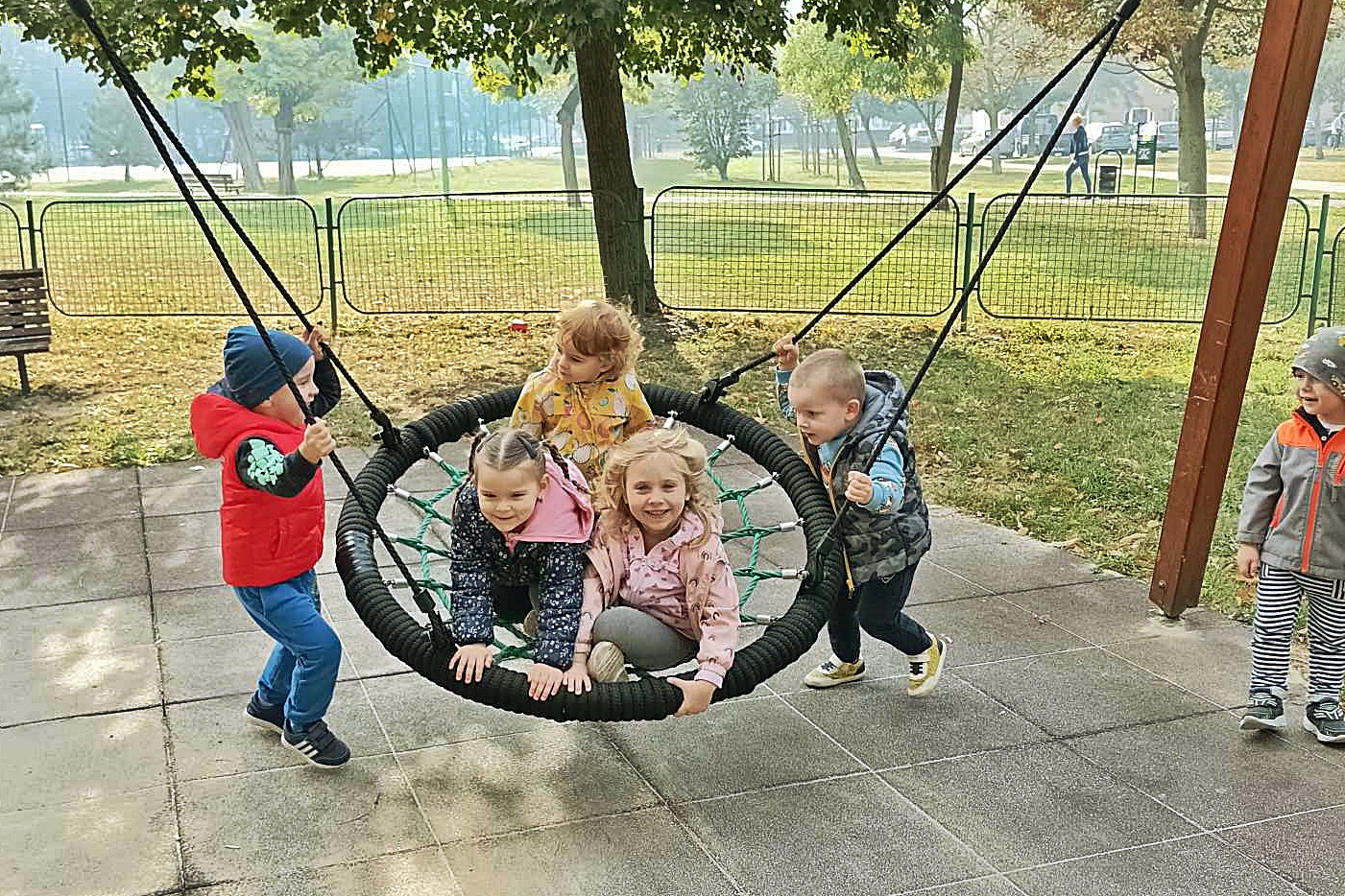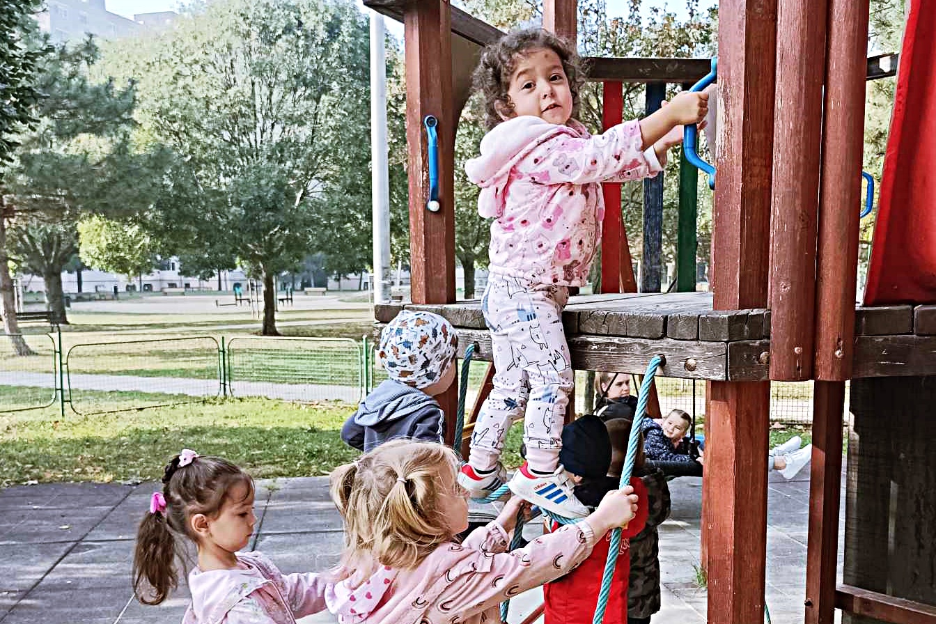 A Liliom csoport a városi sétát gyakorolván az ovihoz közeli játszótérre indult, ahol mi másé, mint a mosolygós játéké volt a főszerep. A legkisebb ovisaink aprócska, de lelkes és ügyes lépésekkel haladtak, miközben ismerkedtek a városi séta világával.