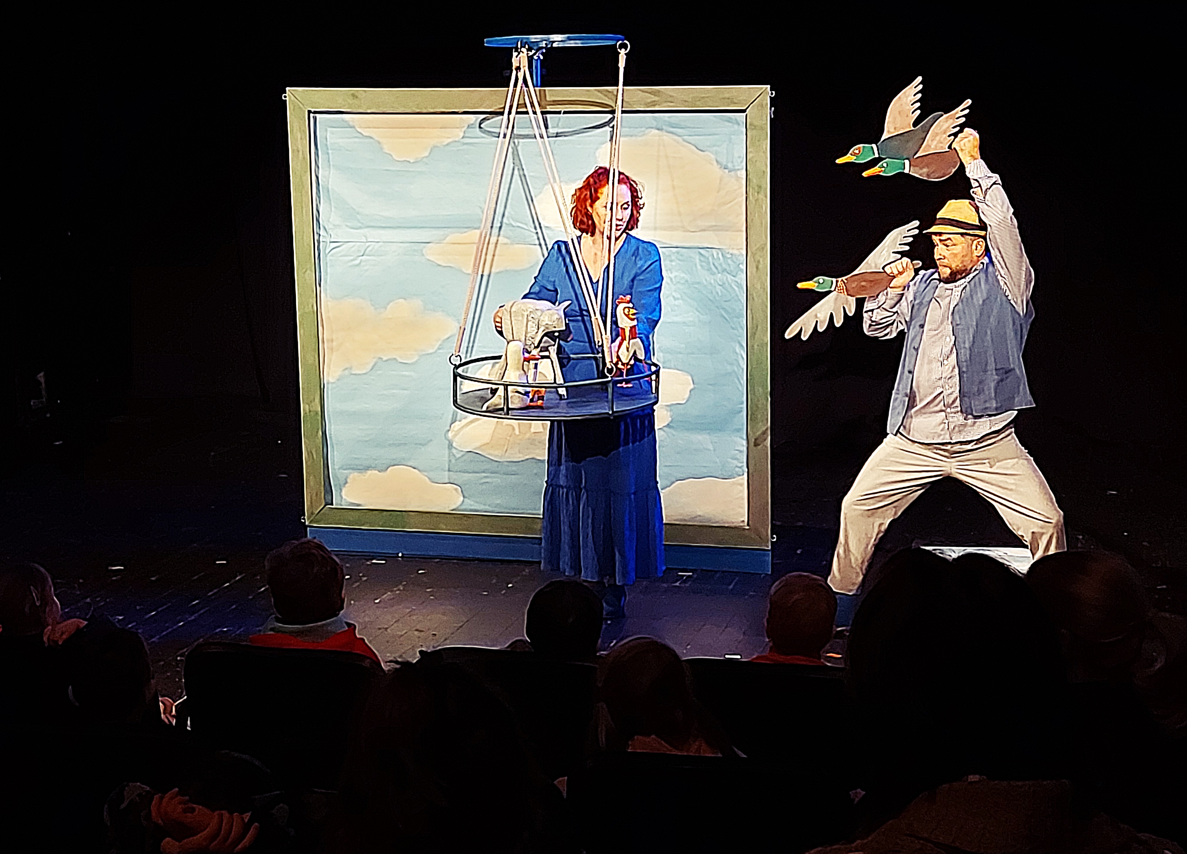 A színház mindig varázslatos hely, ahol a világ első léghajós utazása elevenedett meg három kis állat: a birka a kacsa és a tyúk kalandos utazásán keresztül.