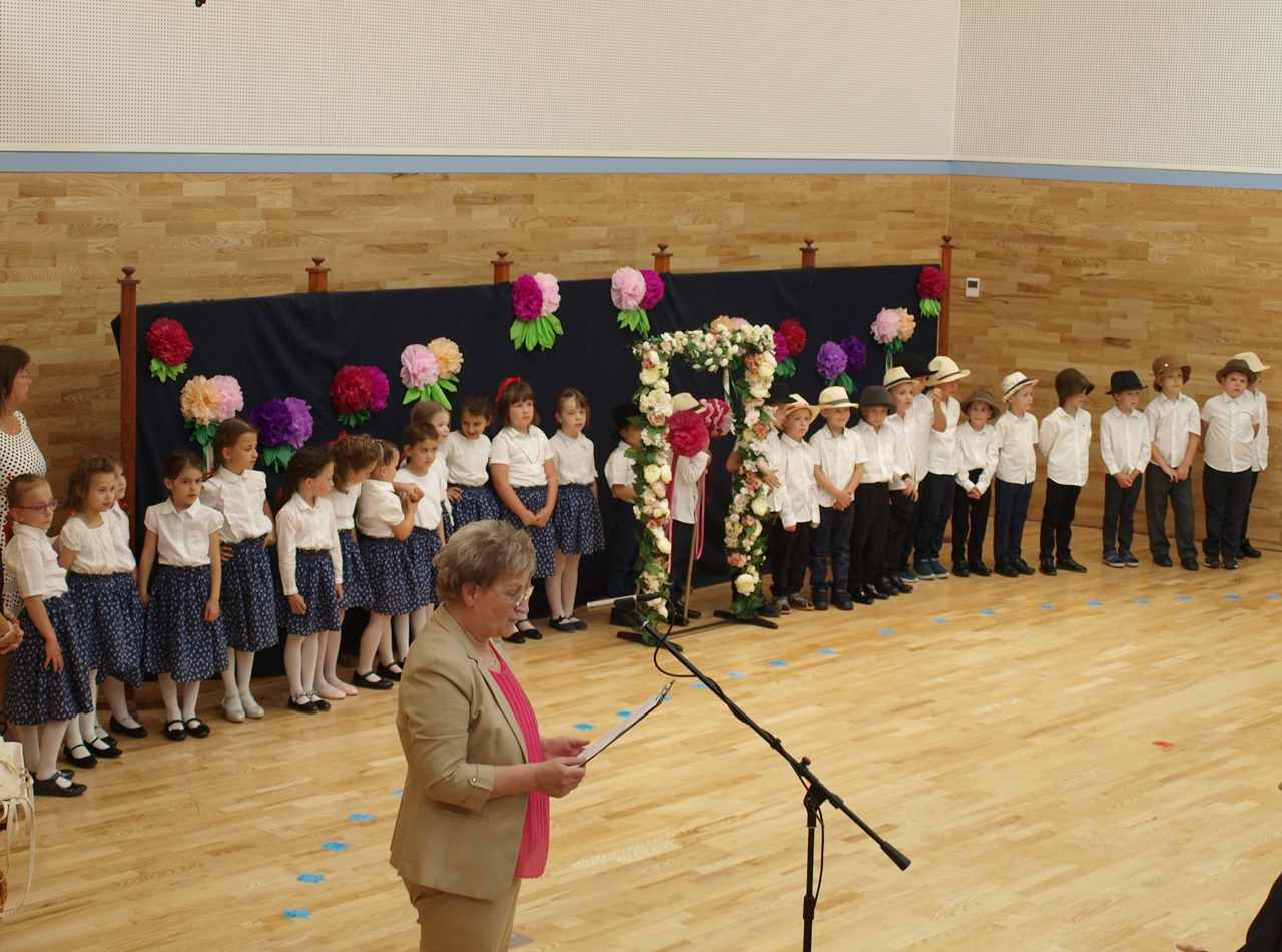 Totsche Andrásné Tünde néni megköszönte a Szülői Munkaközösség tagjainak és a szülőknek az intézmény iránti bizalmukat és segítségüket. A gyermekeket leendő tanítóik is köszöntötték, akik már nem voltak ismeretlenek, hiszen a Bóbita foglalkozásokon egy egész éves közös munka előzte meg ezeket a pillanatokat.