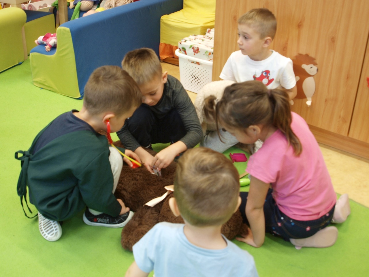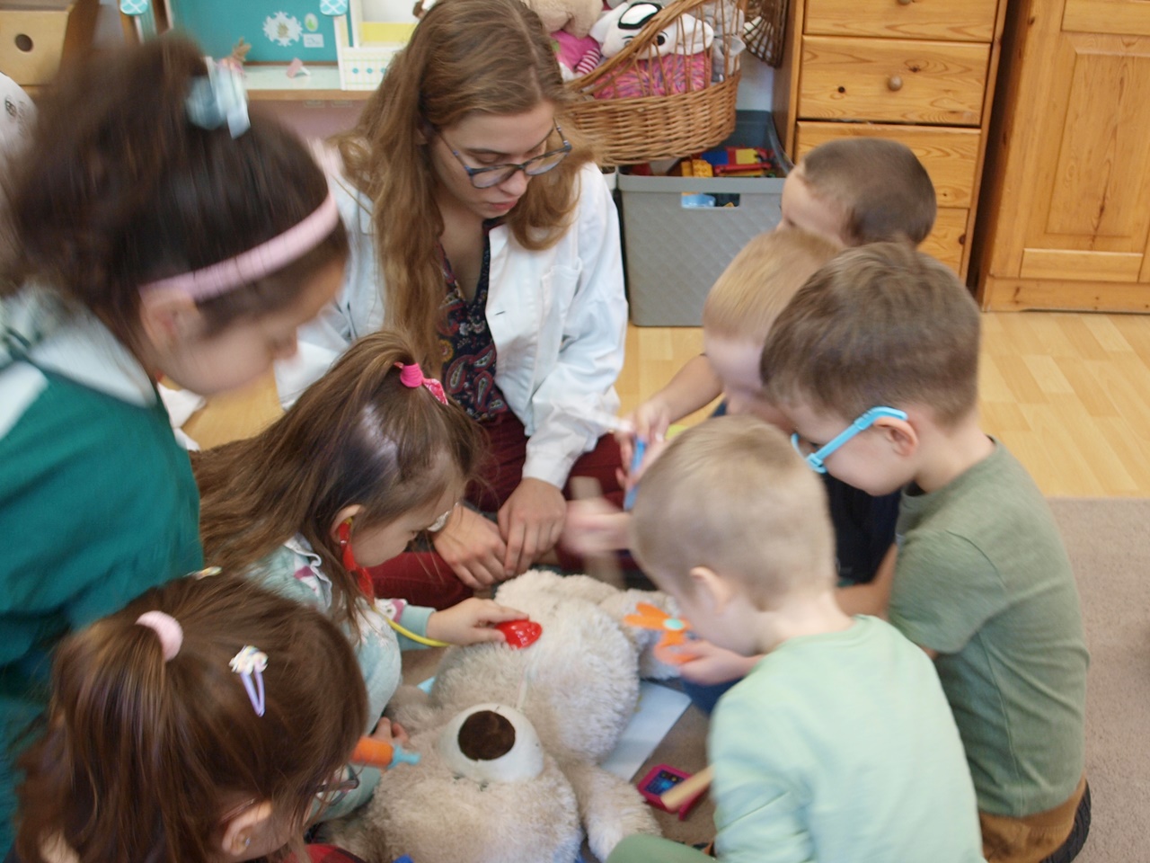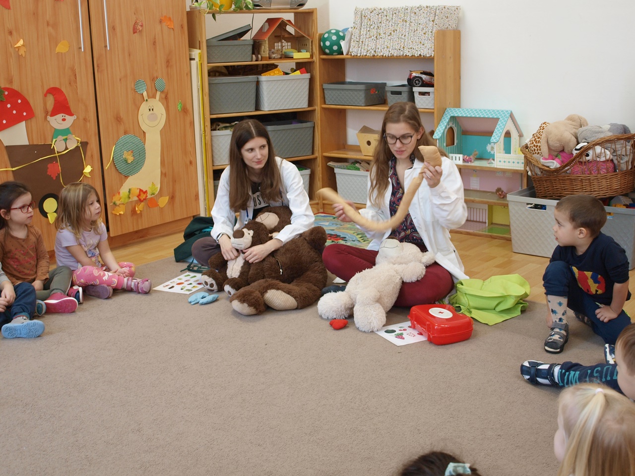 Két önkéntes orvostanhallgató Teddy macikon keresztül, játékosan mutatta be óvodásainknak az emberi test szerveit és érdekességeit. A macik hasából textilből készült szervek kerültek elő, amit a gyermekek megnézhettek és megfoghattak. Az előadás keretén belül hangsúlyozták a kézmosás fontosságát is. A foglalkozás végén a gyermekek kipróbálhatták, felpróbálhatták a játékhoz használt eszközöket, köpenyeket.