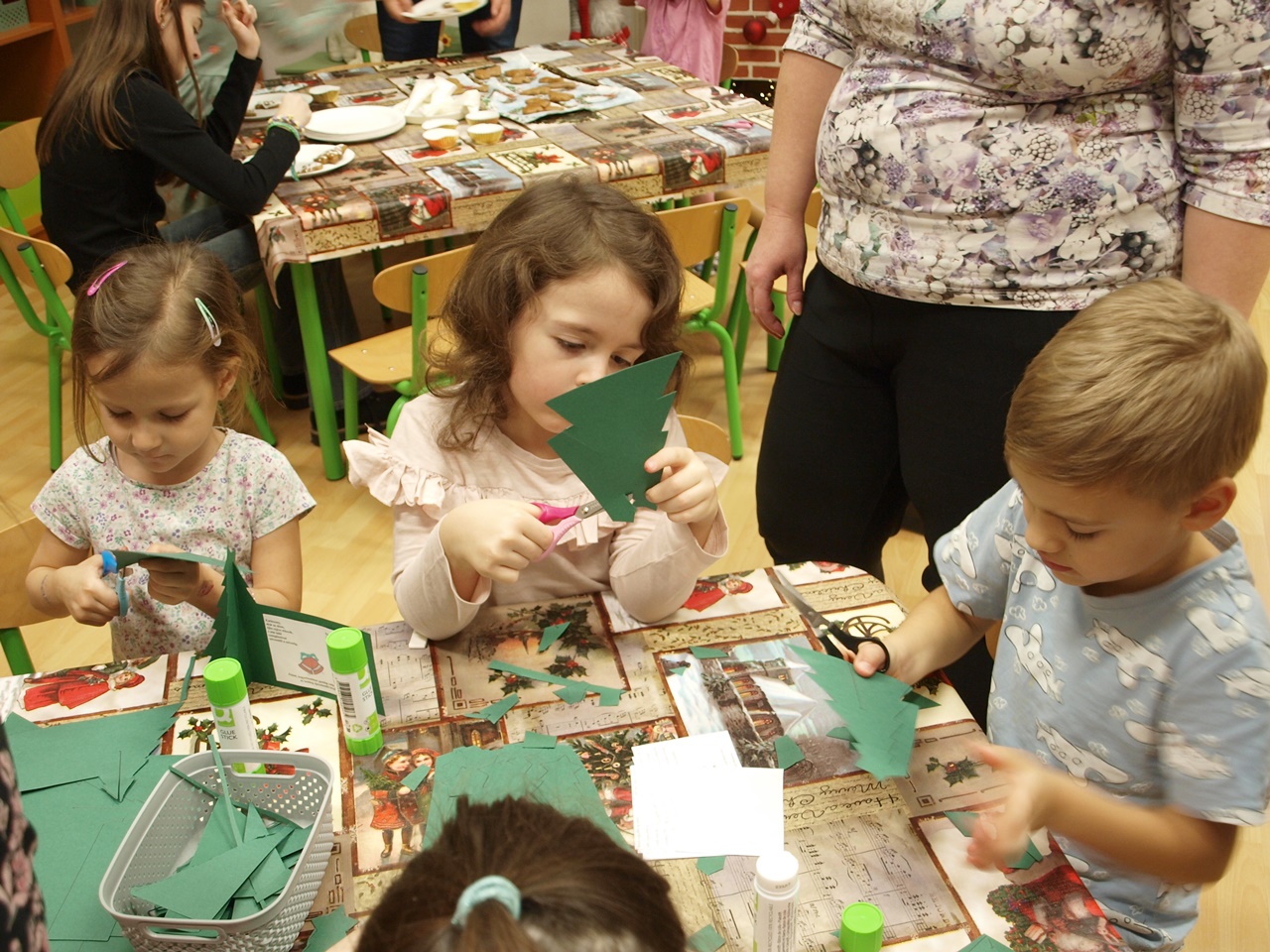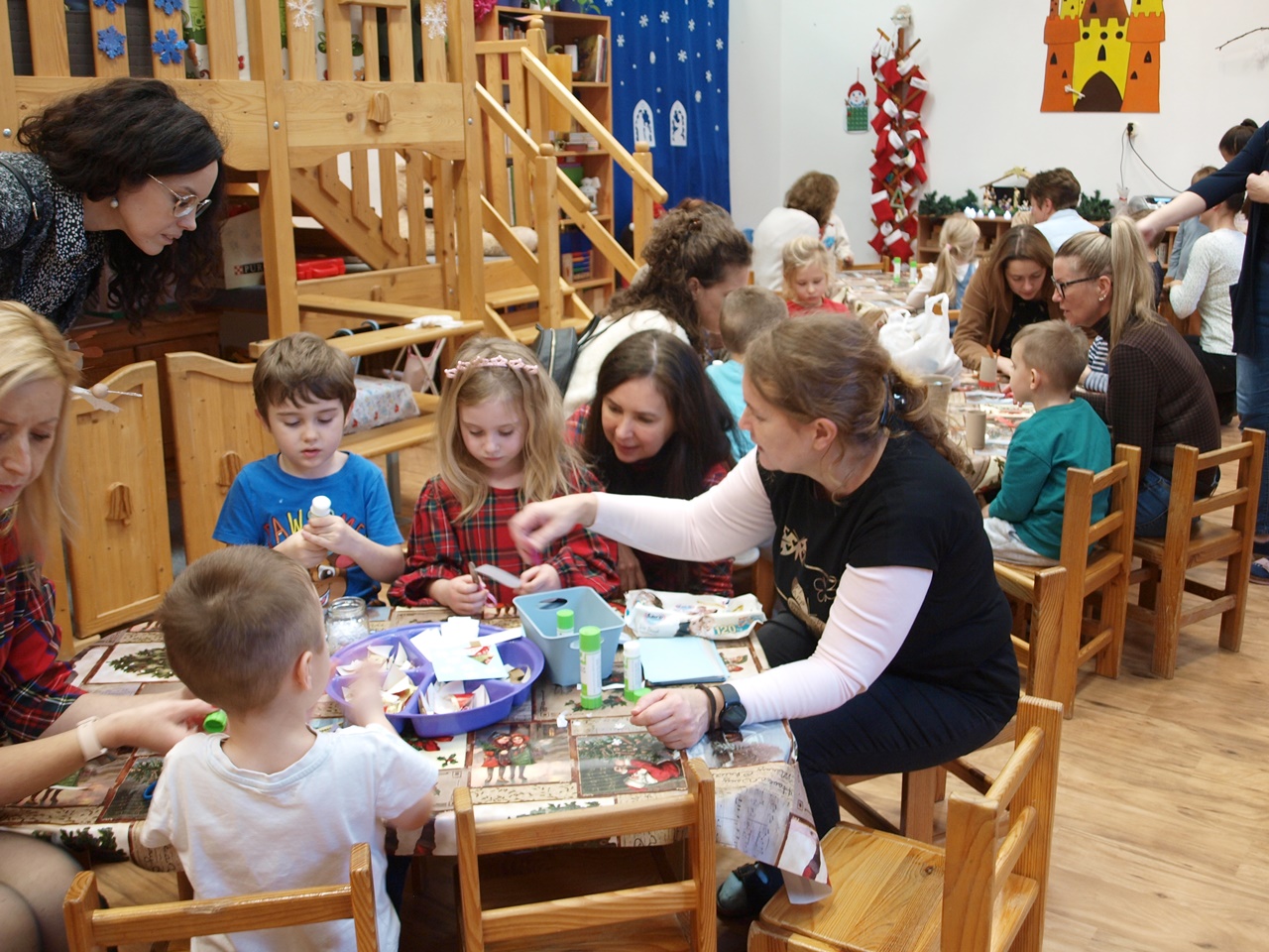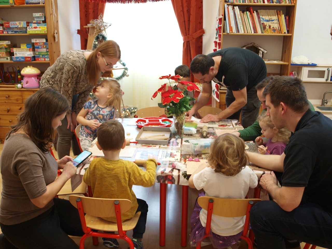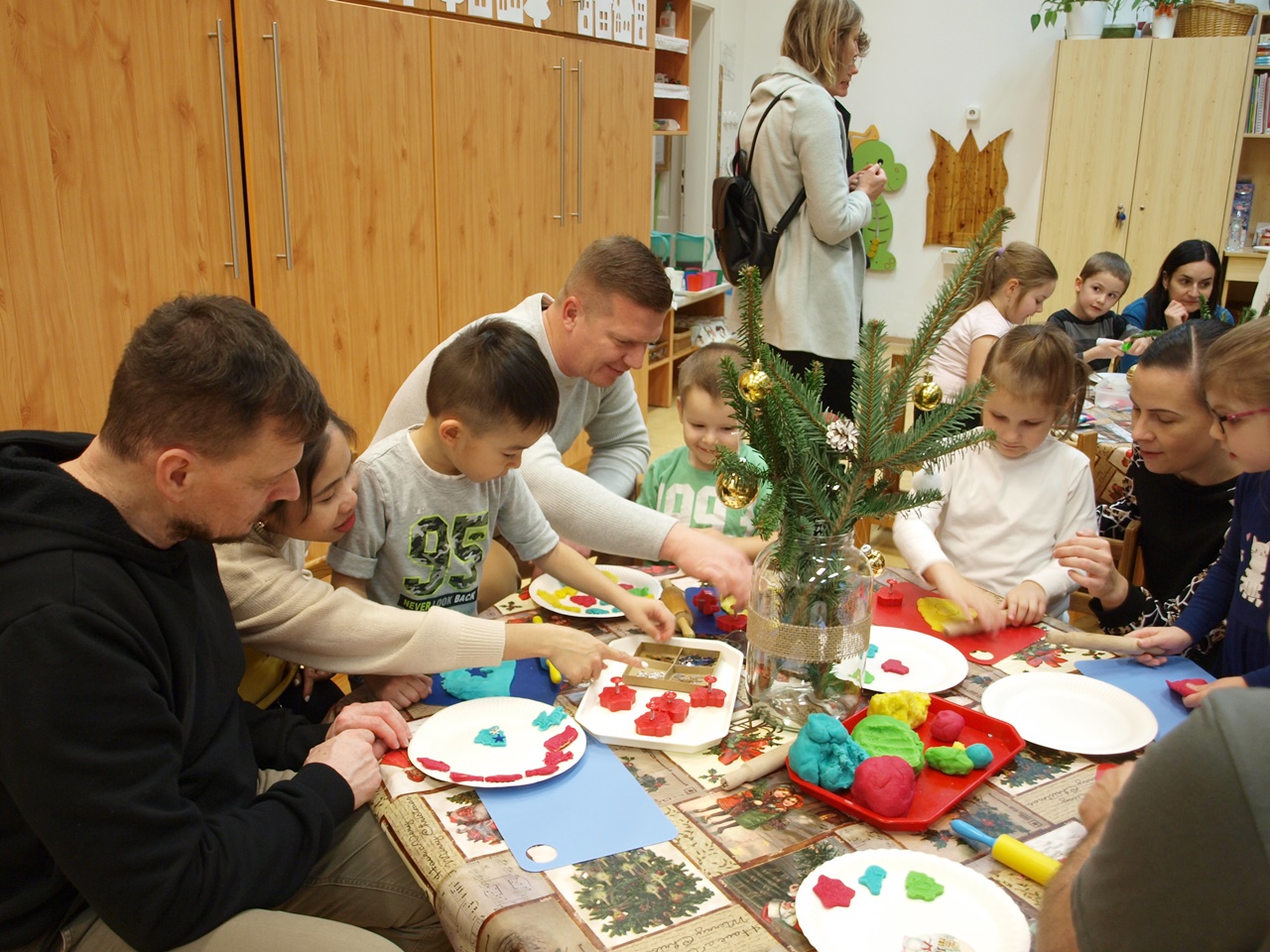 December második hetének egy-egy délutánján a gyermekek a szülőkkel közösen alkothattak a csoportokban. Készíthettek papírból karácsonyi angyalkákat, gipszből készült karácsonyfákat díszíthettek, színes gyurmából formázhattak karácsonyi díszeket, vagy éppen mézeskalácsot rajzolhattak meg. A meghitt és családias kézműves délután végeztével a gyermekek szebbnél szebb alkotásokat vihettek haza.
